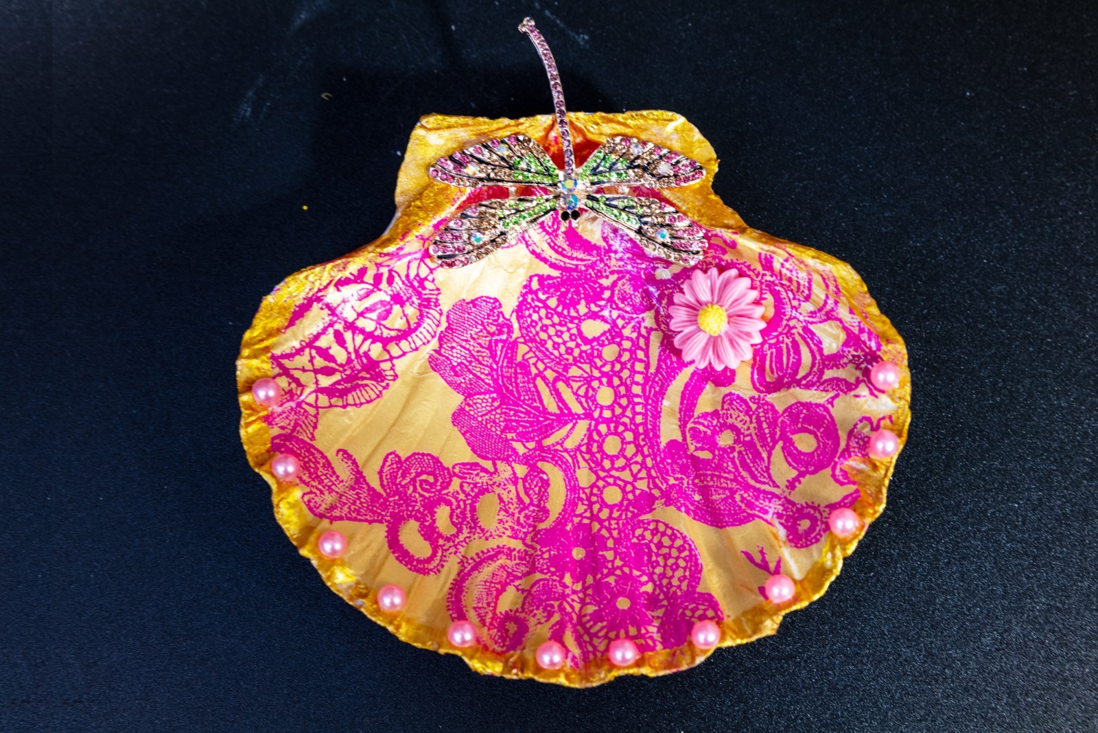 Vide poche coquille St Jacques Dentelle rose - Libellule - 15 €